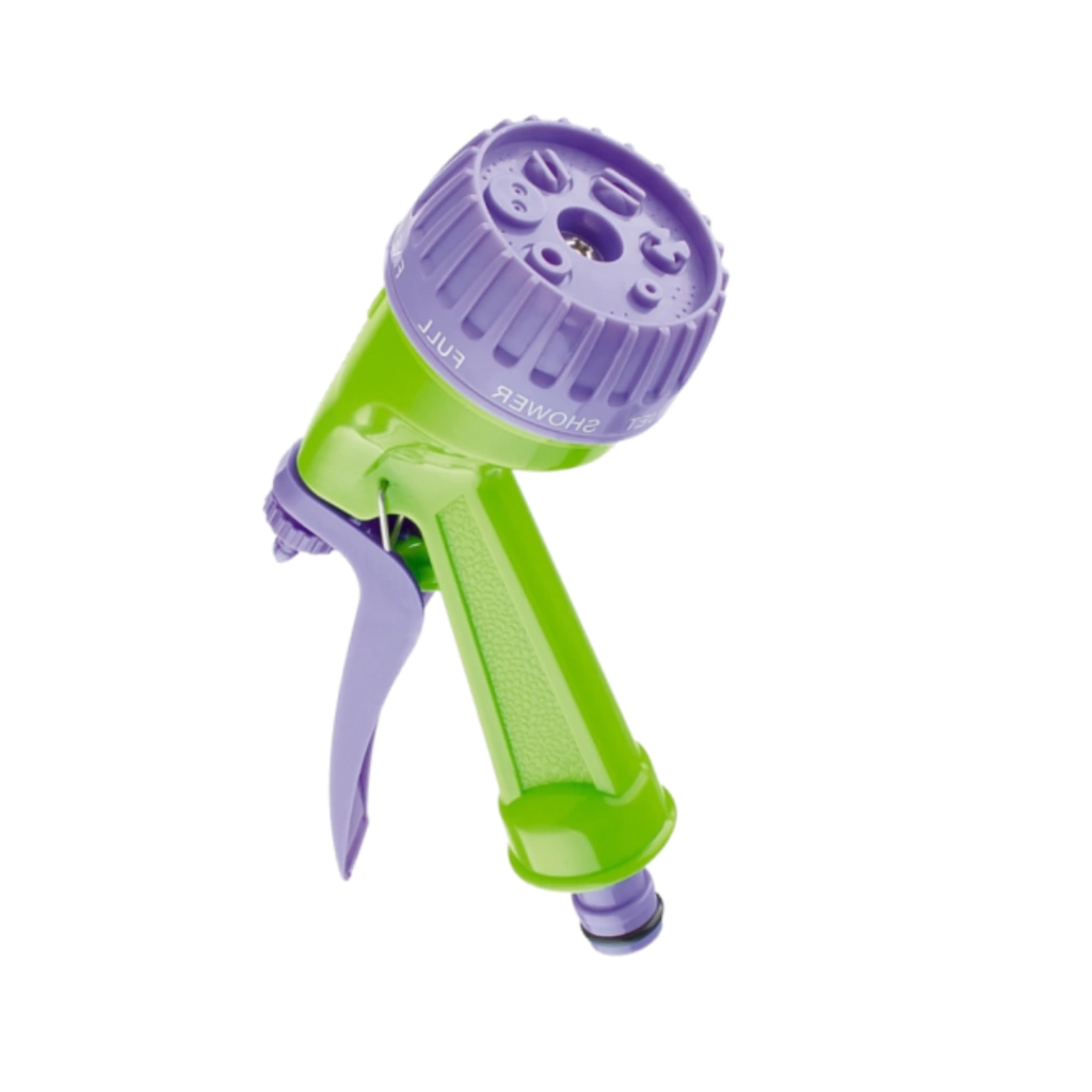 Esguicho tipo pistola para engate rápido o gatilho é situado na parte de trás. Equipado com o injetor regulador que permite usar sete modos de irrigação: chuveiro, uso de todos os orifícios, nevoeiro fino, jato chato vertical, jato chato horizontal, nevoeiro, jato forte. Tem fixador para gatilho para pulverização contínua. Projetado para todos os tipos de irrigação em casas de campo, jardins e parques, bem como para purificação. É compatível com todos os elementos do sistema de irrigação PALISAD e PALISAD Luxe. Corpo, cabo e gatilho são feitos de plástico-ABS resistente.