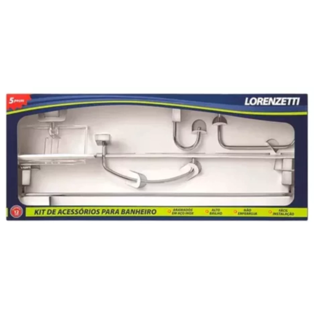 O Kit para Banheiro LorenWay com 5 Peças Cromado acompanha 01 saboneteia, 01 porta papel higiênico, 01 porta toalha de rosto em argola, 01 porta toalha barra e 01 cabide produzidos em metal cromado. As peças têm design leve que dá sensação de inovação e modernidade à decoração do banheiro.